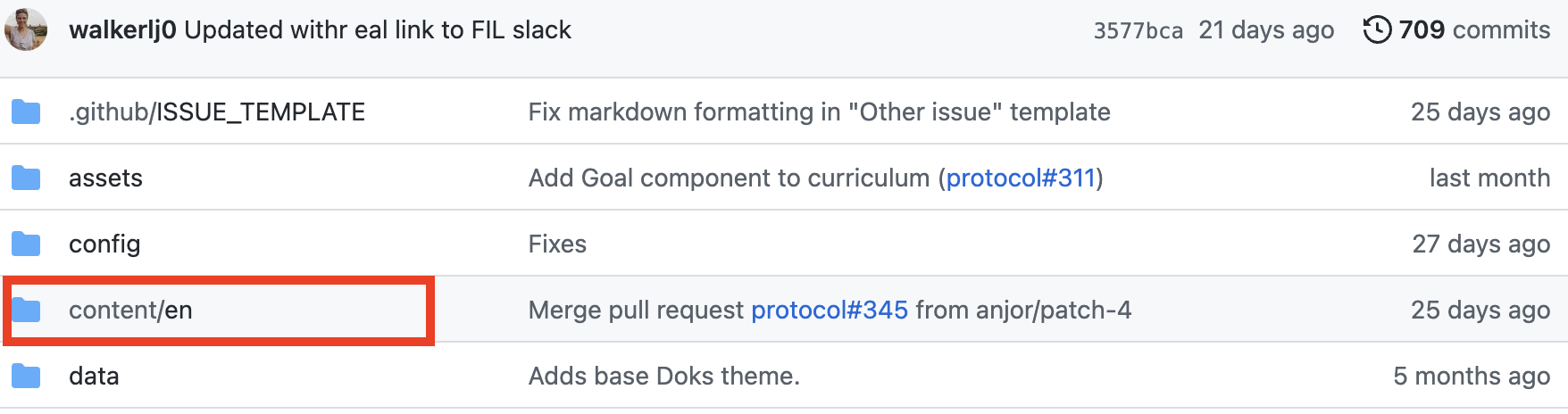 Compare the directory structure with the URL of the curriculum and find a page you would like to make a small edit on. Note that the file you need to edit will either have the same name as the file in the URL (e.g. how-filecoin-works.md), or be an